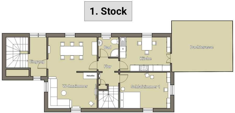 - Wohnzimmer, Esszimmer, Küche, 2 Bäder
